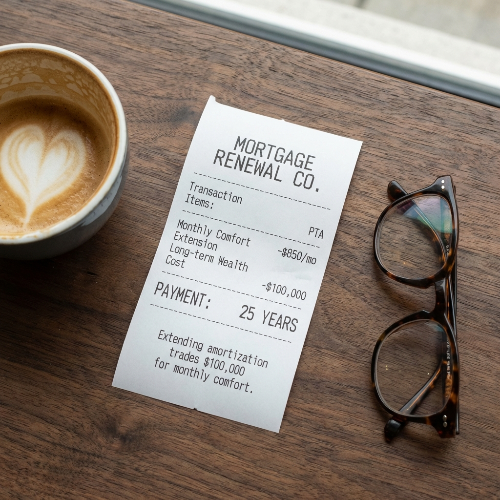 TL;DR: 1.15 million Canadian homeowners renewing mortgages in 2026 focus on lowering monthly payments. Wrong move. You should focus on total interest paid. Extending a $400,000 mortgage from 15 to 25 years? You’ll pay an extra $100,000 in interest. Automatic renewal? You’re throwing away $9,300 over five years. Principal acceleration matters more than payment comfort.